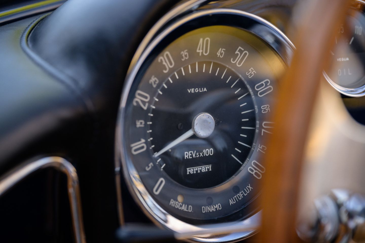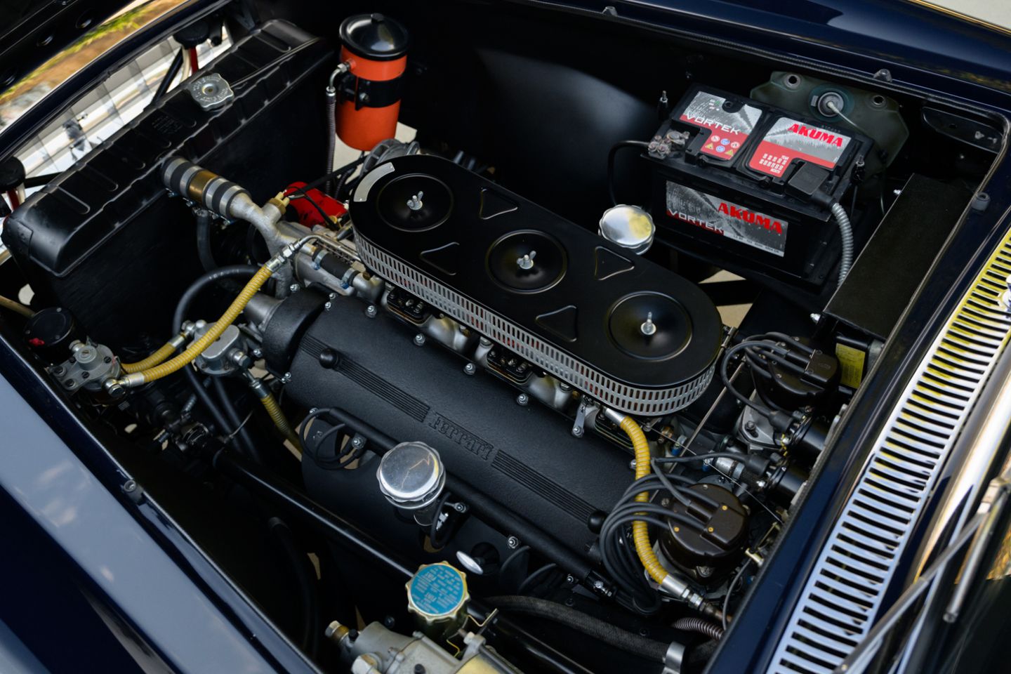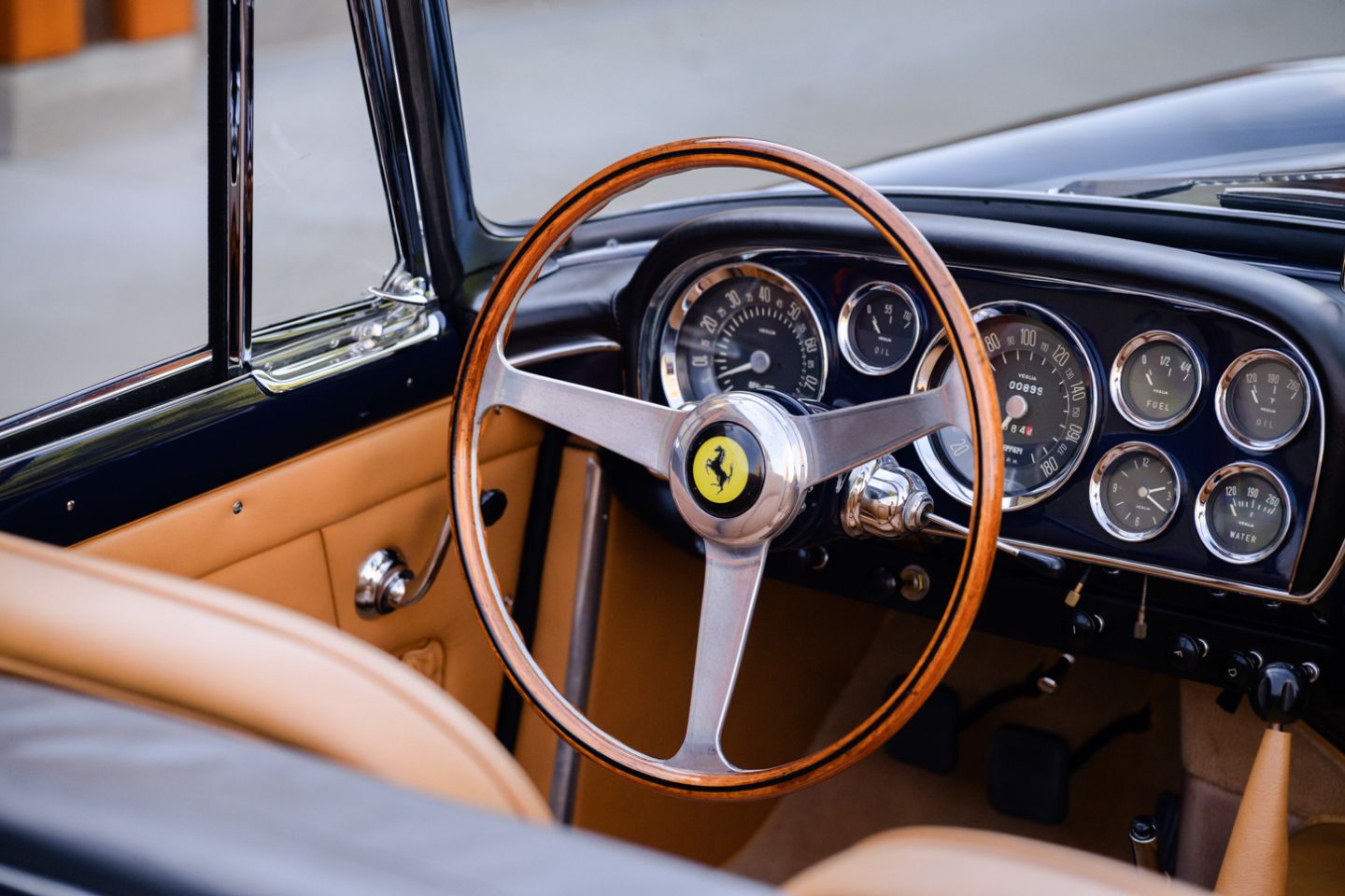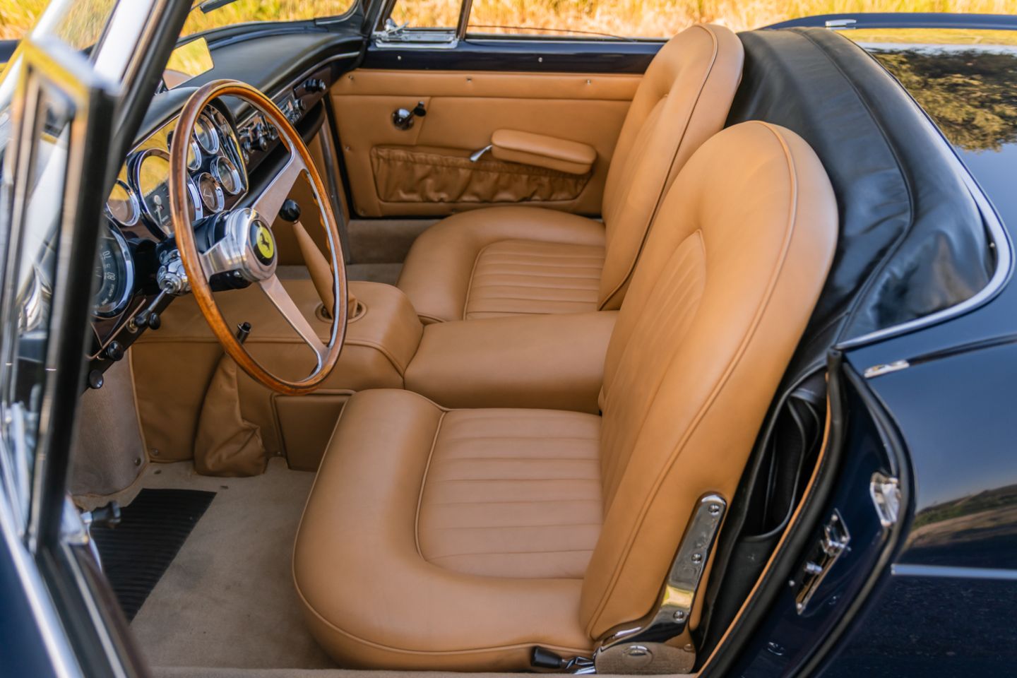 Completed only recently after a four-year restoration totaling nearly €240,000, chassis 1805 GT is presented in exceptional condition and is offered with zero miles since the work was finished. Now returned to its original, striking color combination of dark blue over beige leather, it stands as a quintessential gentleman’s Ferrari—an ideal candidate for international concours or FCA events, and a superb open grand tourer for the enthusiast wishing to savor Ferrari performance and luxury at their peak.