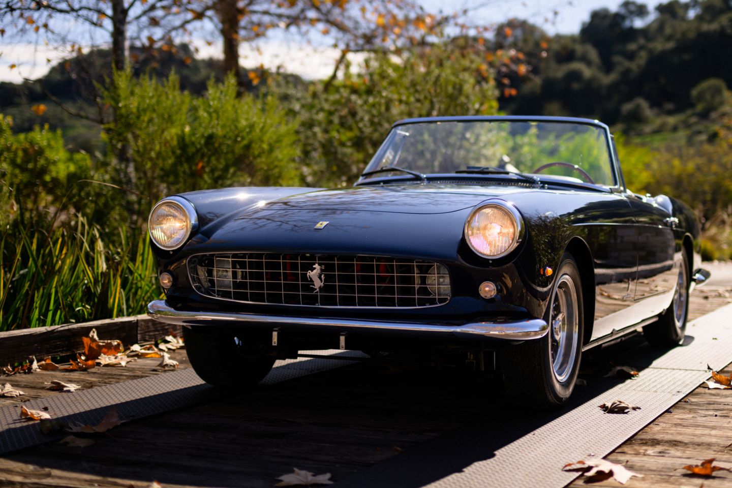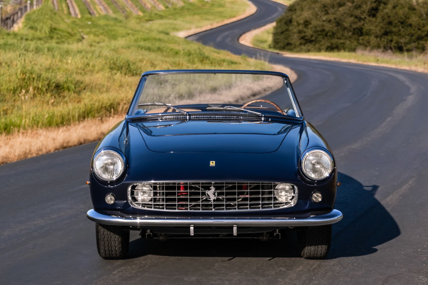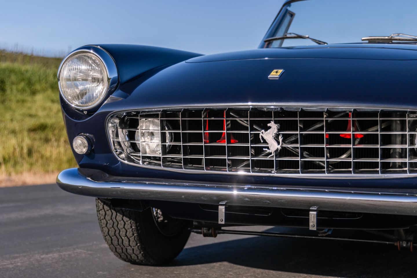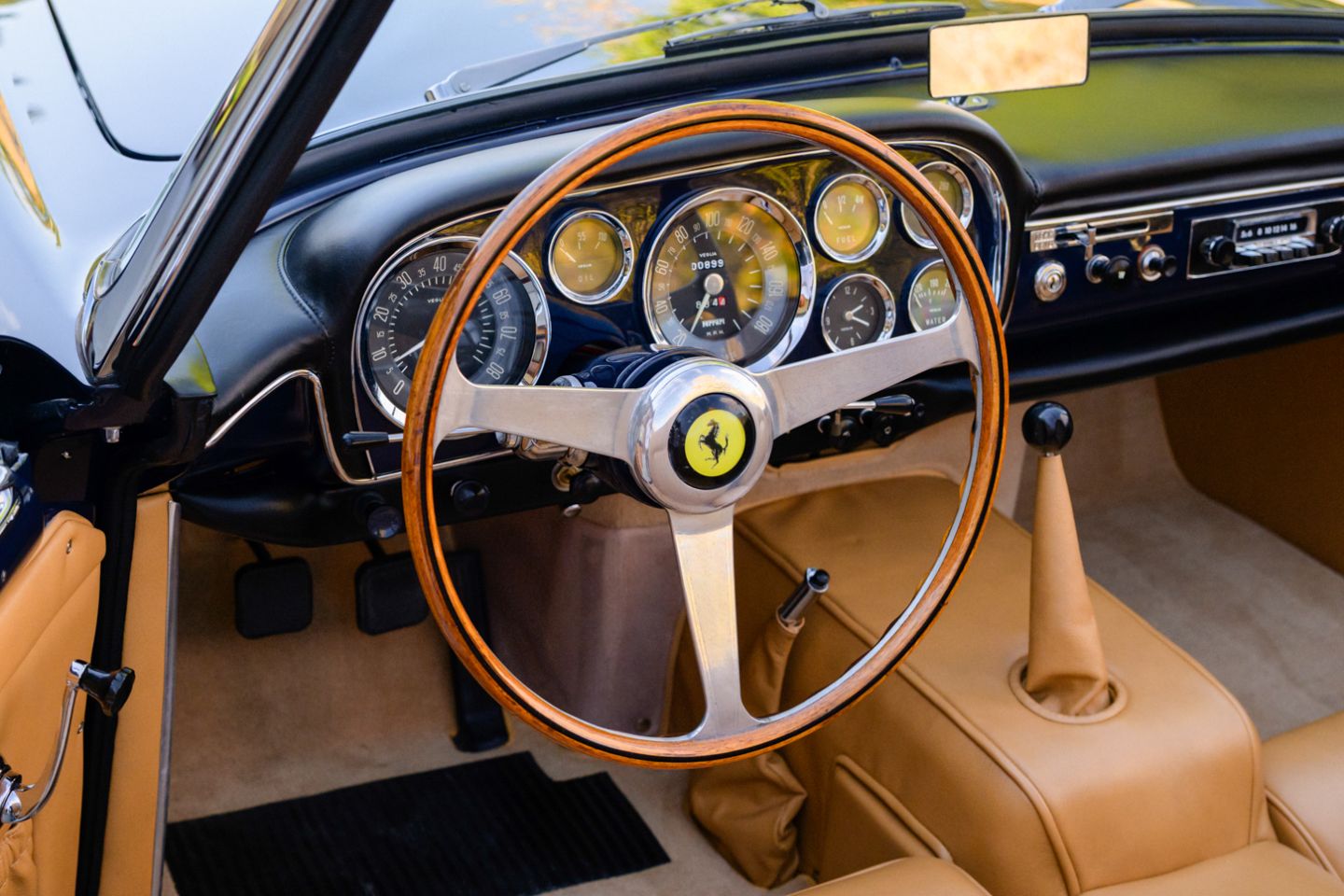 Completed only recently after a four-year restoration totaling nearly €240,000, chassis 1805 GT is presented in exceptional condition and is offered with zero miles since the work was finished. Now returned to its original, striking color combination of dark blue over beige leather, it stands as a quintessential gentleman’s Ferrari—an ideal candidate for international concours or FCA events, and a superb open grand tourer for the enthusiast wishing to savor Ferrari performance and luxury at their peak.