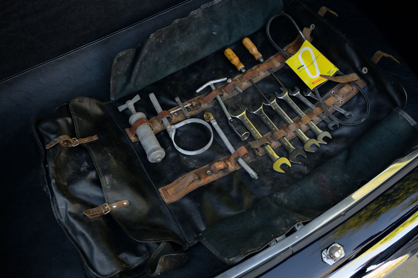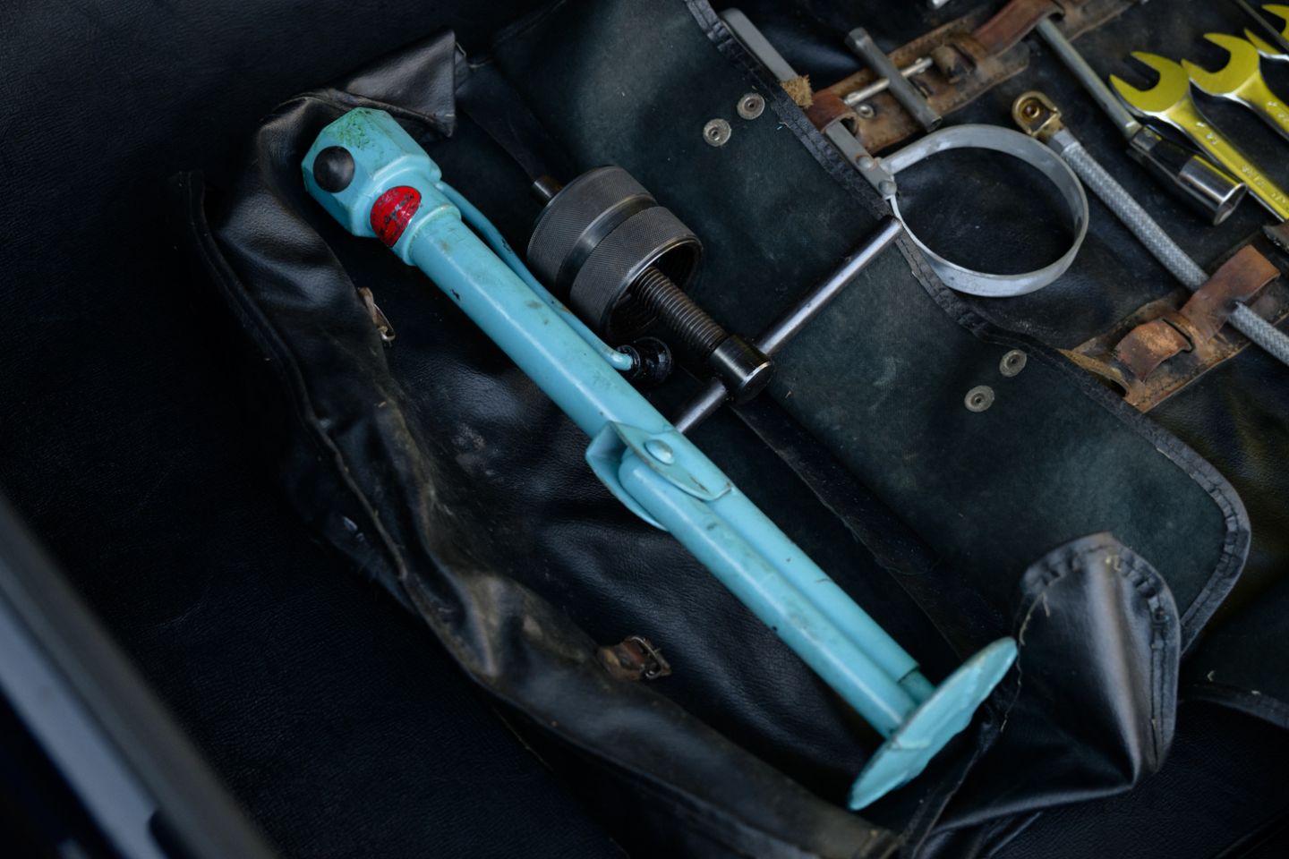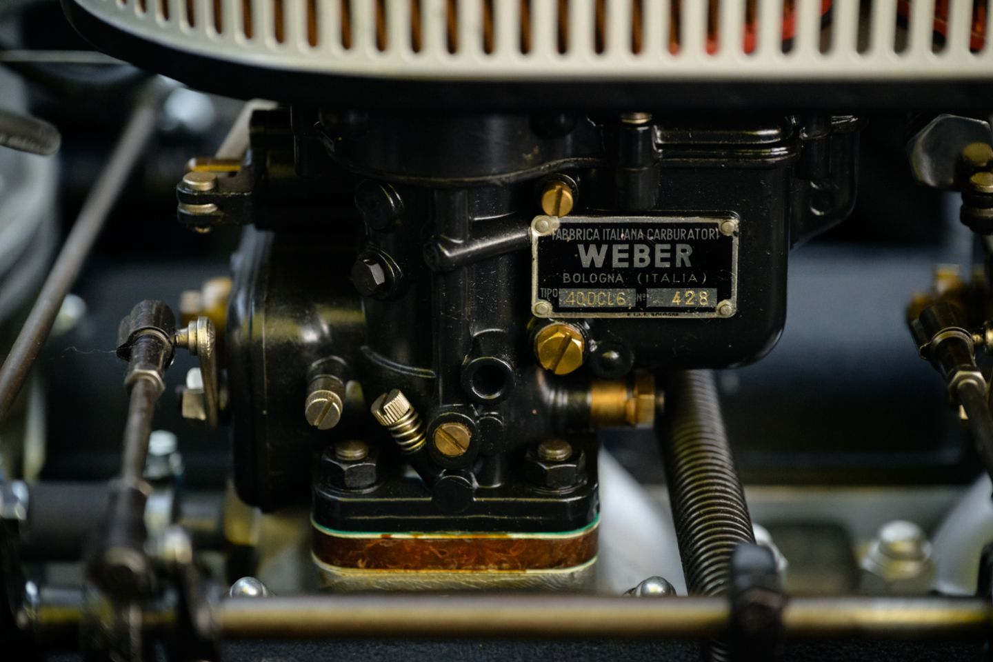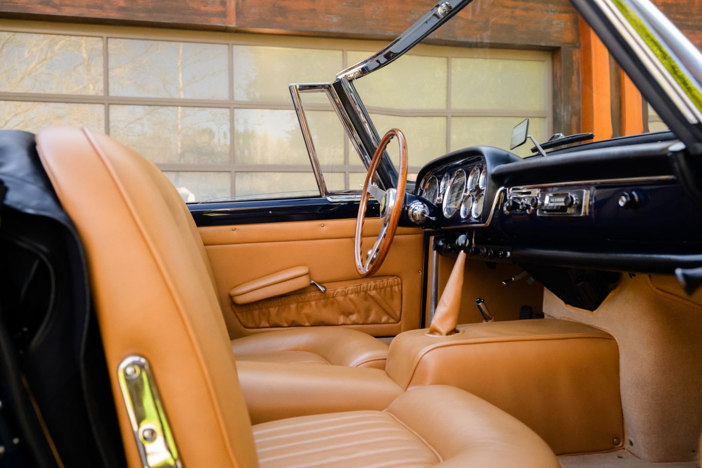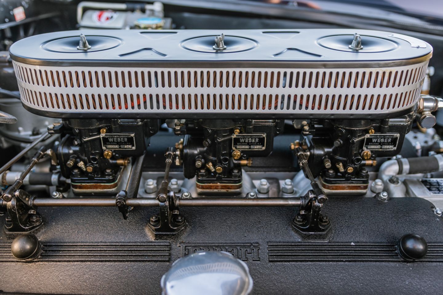 To ensure a faithful and high-quality restoration, RM Sotheby’s commissioned respected marque specialists in the Modena area. Carrozzeria Sports Cars handled the bodywork, Ferrari Classiche rebuilt the engine, and Corrado Patella’s Autofficina Omega refurbished the gearbox, rear axle, suspension, and brakes, while Maieli Interni Auto retrimmed the interior in correct Connolly leather. The car is also equipped with a proper hardtop and is accompanied by a tool kit; its engine (1805 GT) is original to the chassis, although the gearbox is of a later type.