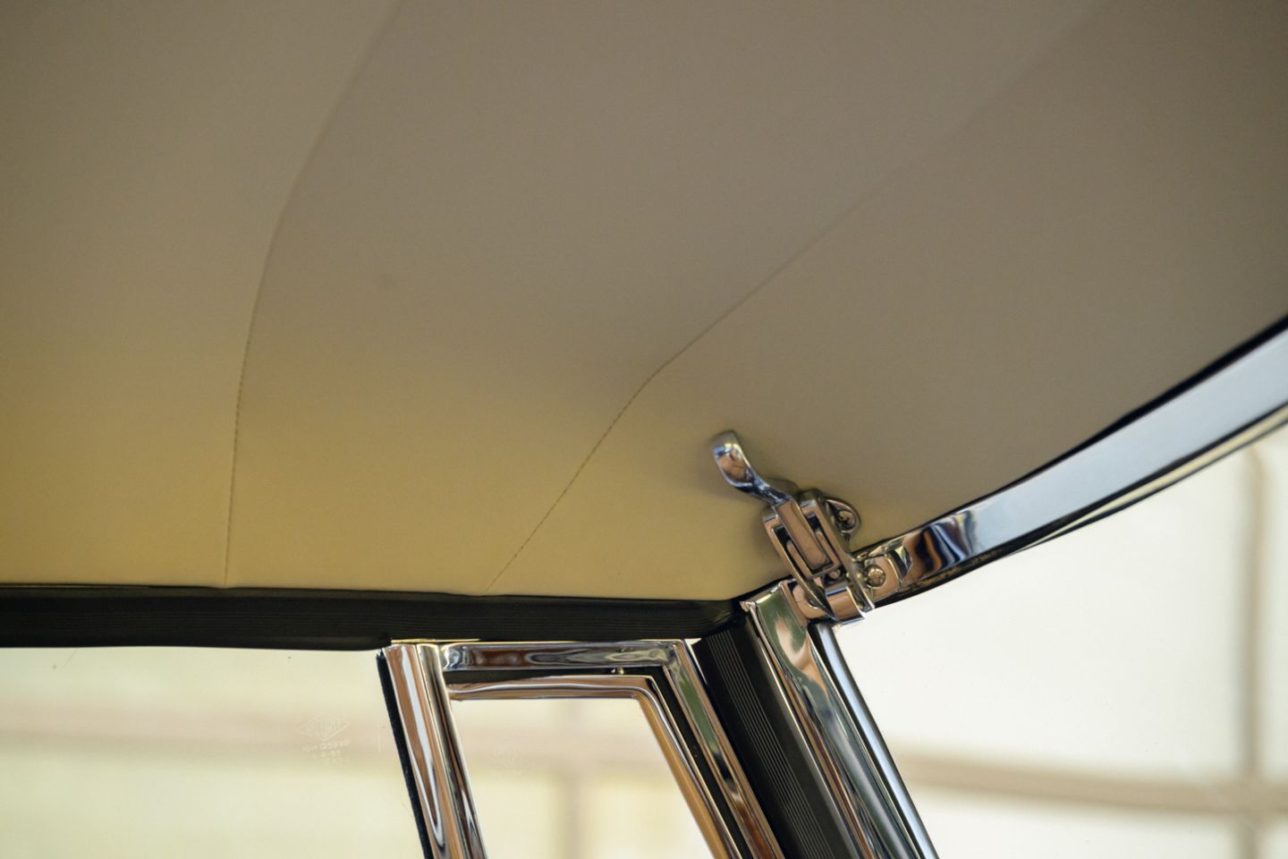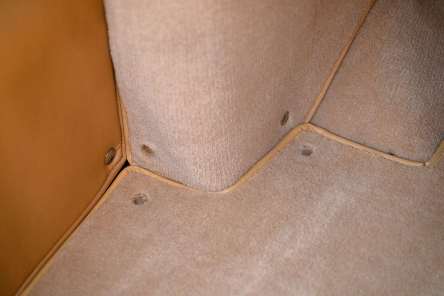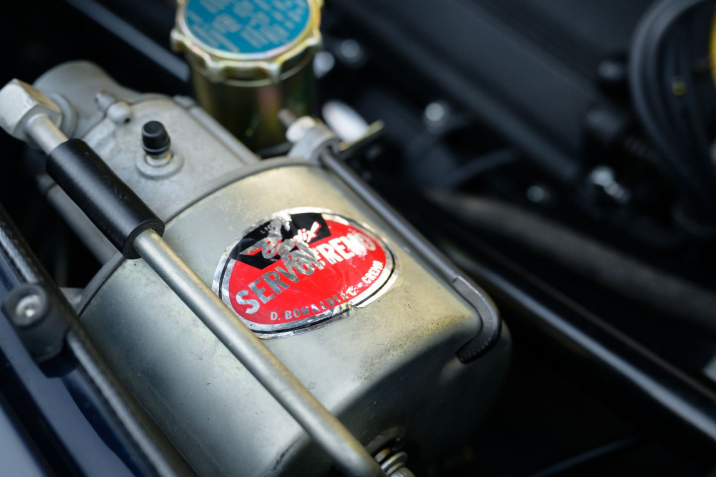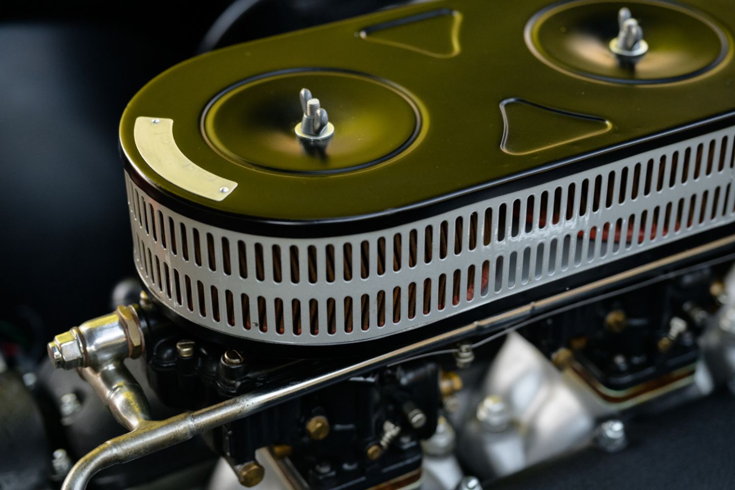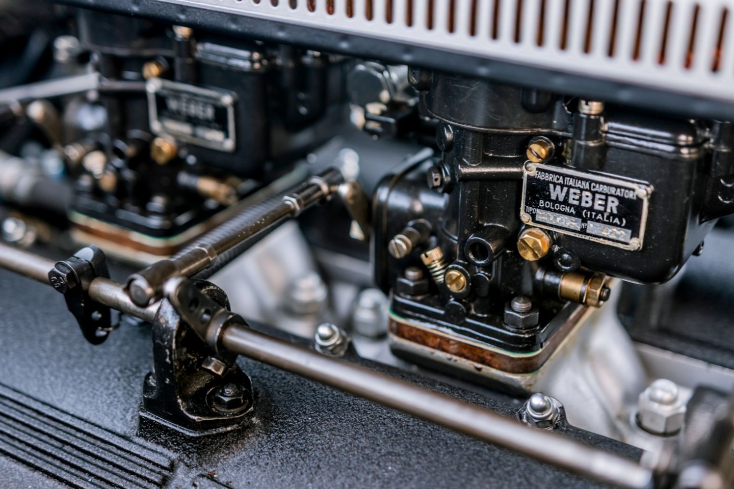 To ensure a faithful and high-quality restoration, RM Sotheby’s commissioned respected marque specialists in the Modena area. Carrozzeria Sports Cars handled the bodywork, Ferrari Classiche rebuilt the engine, and Corrado Patella’s Autofficina Omega refurbished the gearbox, rear axle, suspension, and brakes, while Maieli Interni Auto retrimmed the interior in correct Connolly leather. The car is also equipped with a proper hardtop and is accompanied by a tool kit; its engine (1805 GT) is original to the chassis, although the gearbox is of a later type.