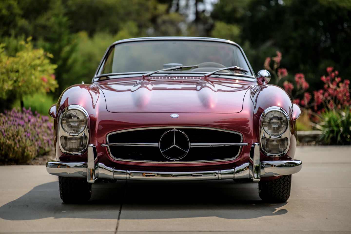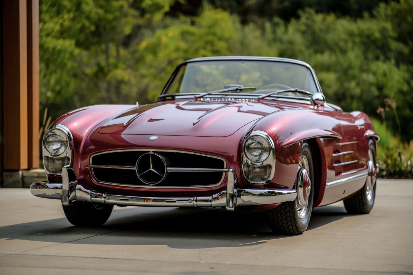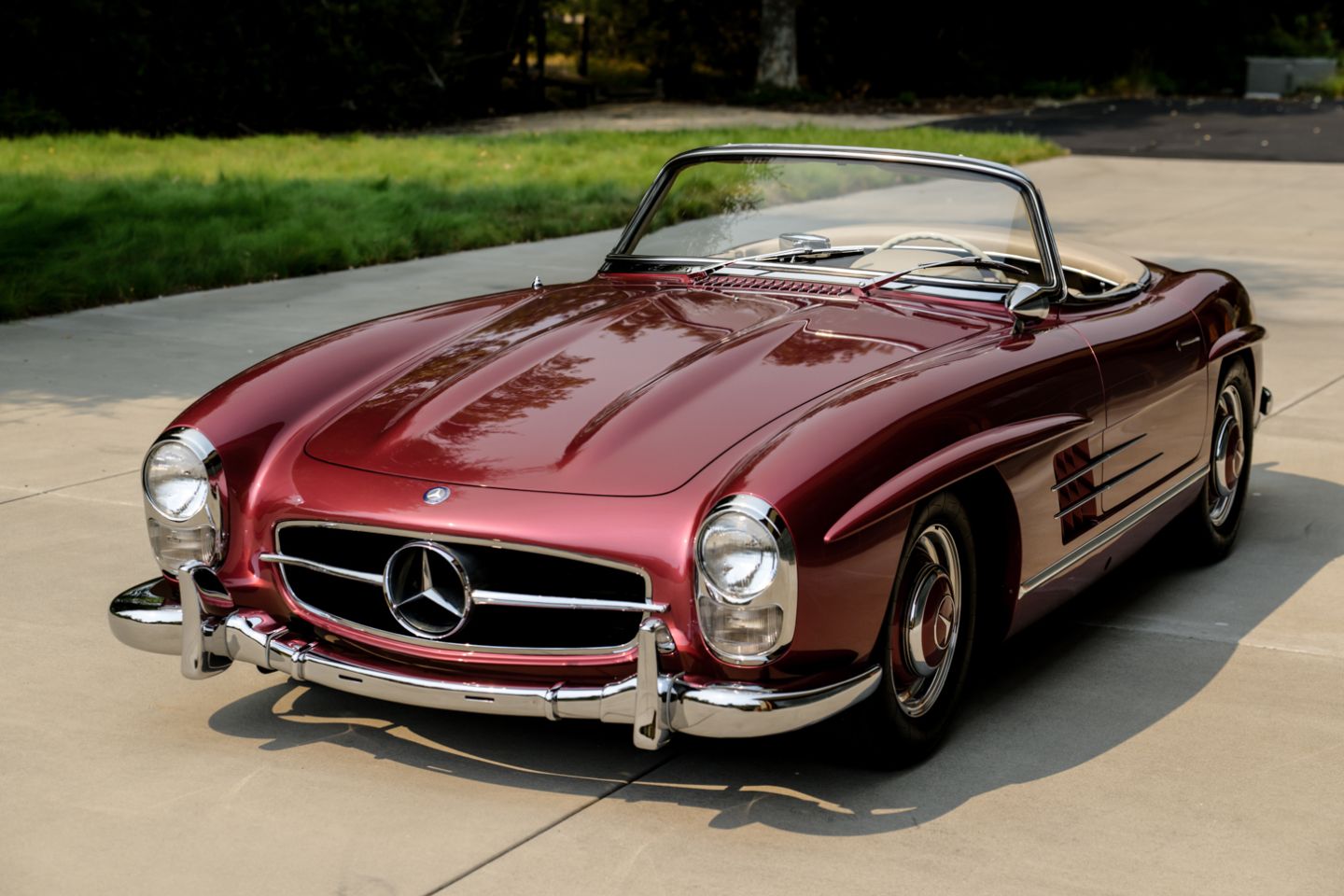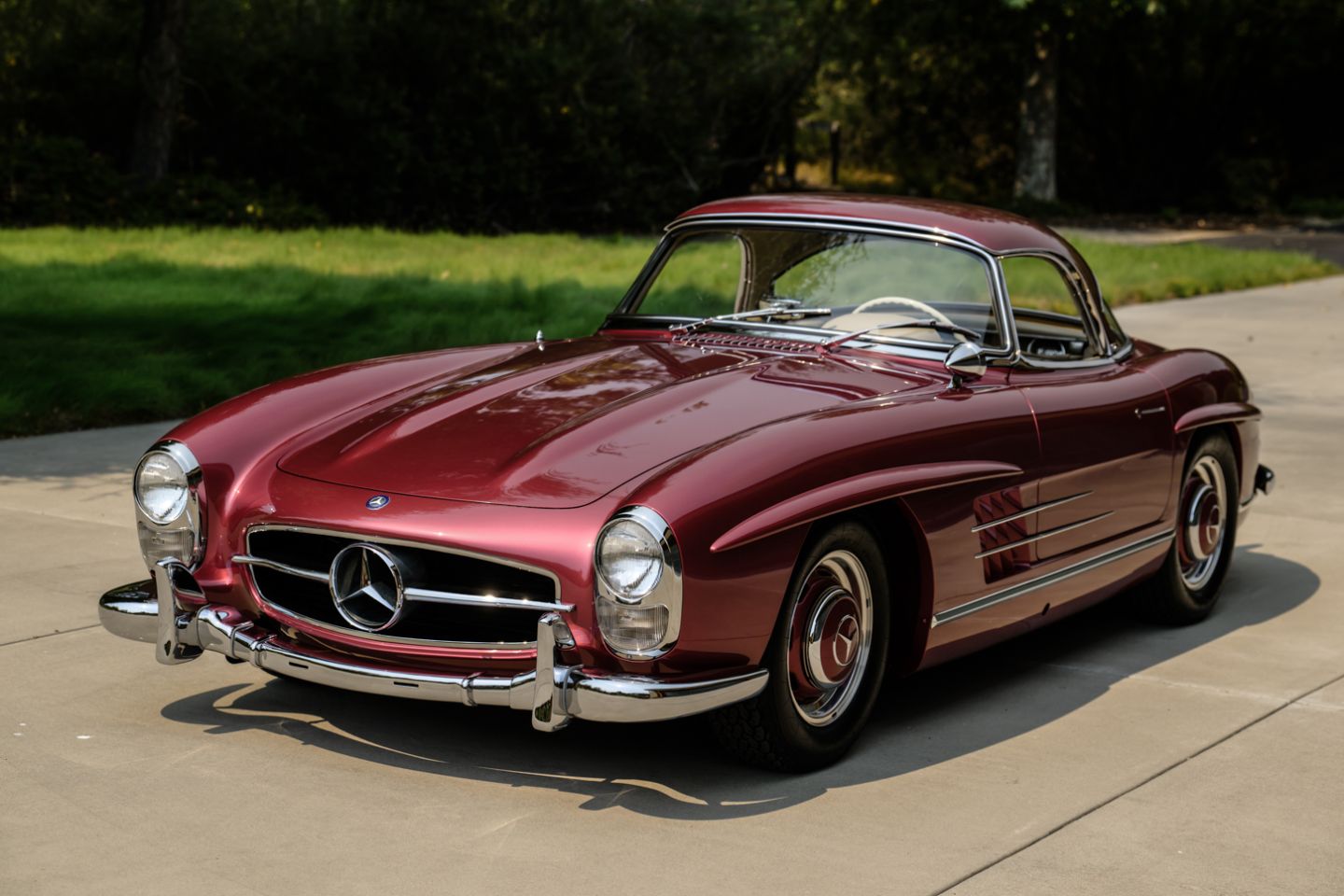 With 37 years running of fastidious, enthusiast care by a multi-year Gullwing Group President, this Concours restored, still-ready-for-show 1959 Mercedes-Benz 300SL Roadster presents today in the striking Mercedes-Benz factory color of Garnet metallic paint over a beautifully kept 1060 creme leather interior with matching canvas soft top, chrome wheels, fitted matching luggage and factory hard top. The 300SL comes with a copy of its factory data card, original books, tools and jack. Chassis 8500158 is an example well-suited for show on any concours lawn in the world, with fully known history from new and a level of curb appeal and over visual prowess that few 300SLs in the world can match, this W198 Mercedes-Benz is ready for new adventures and a next chapter of driving enjoyment.