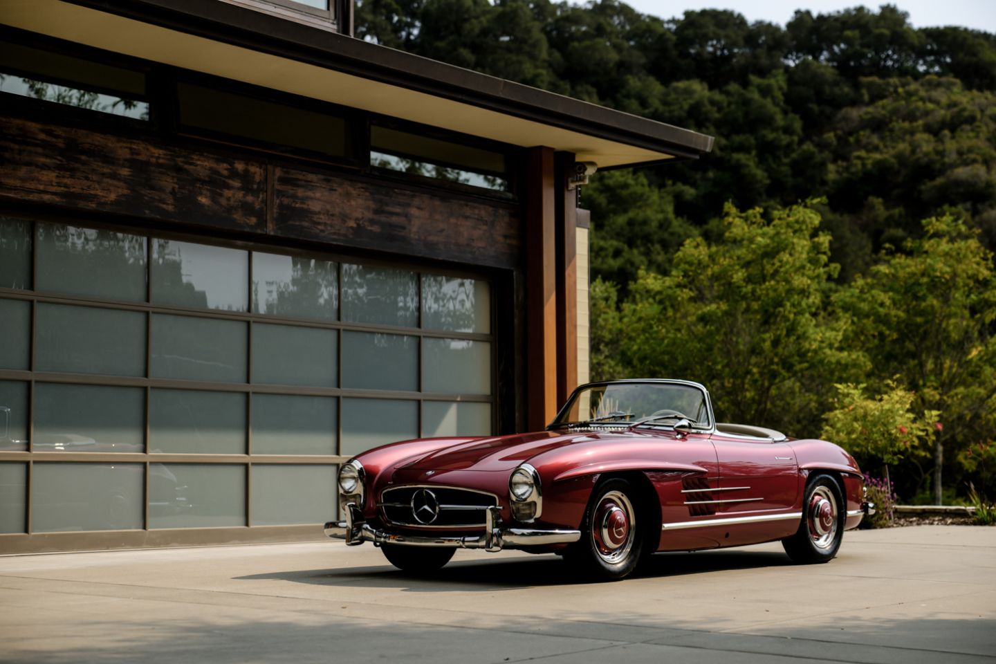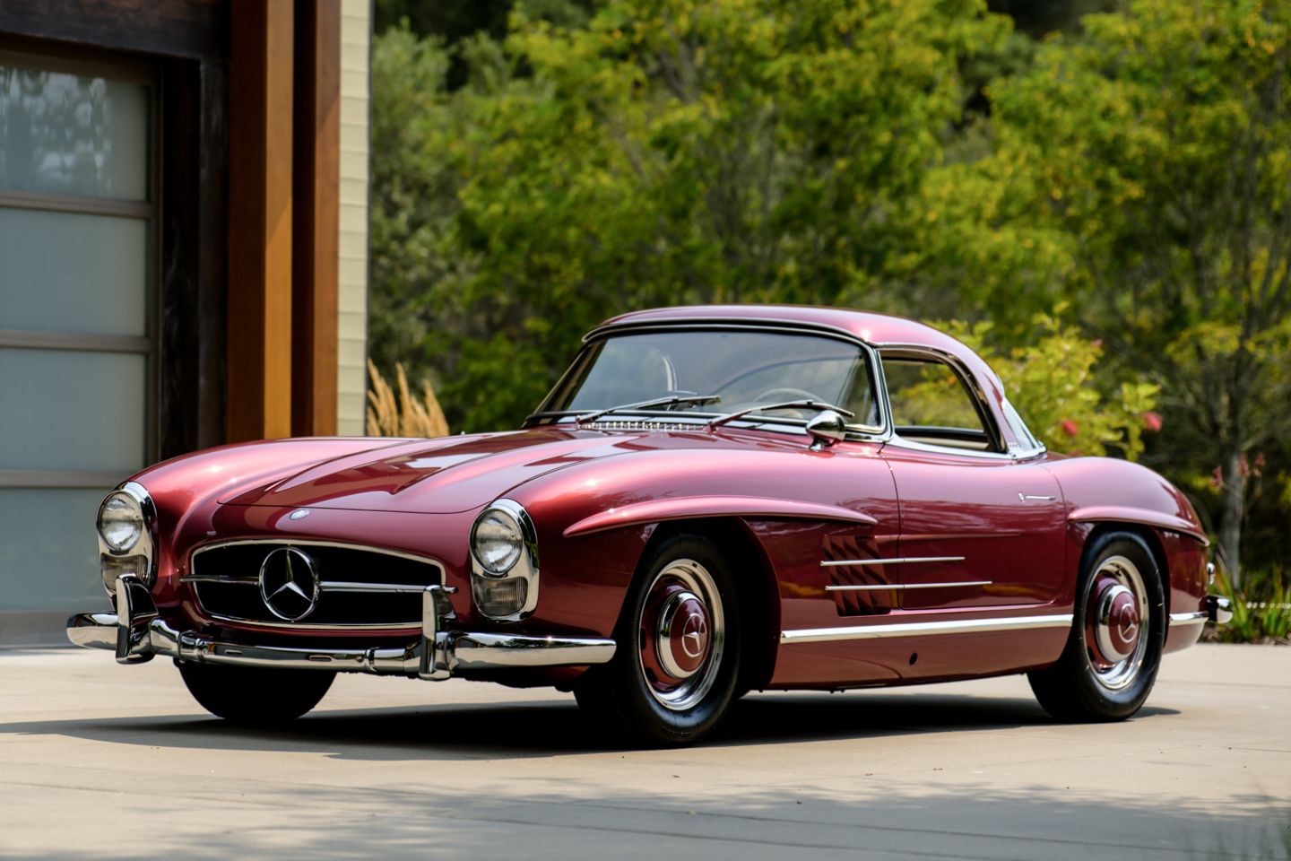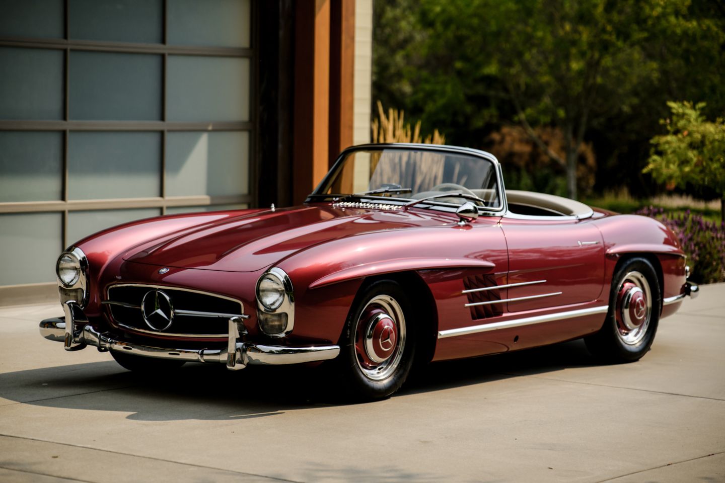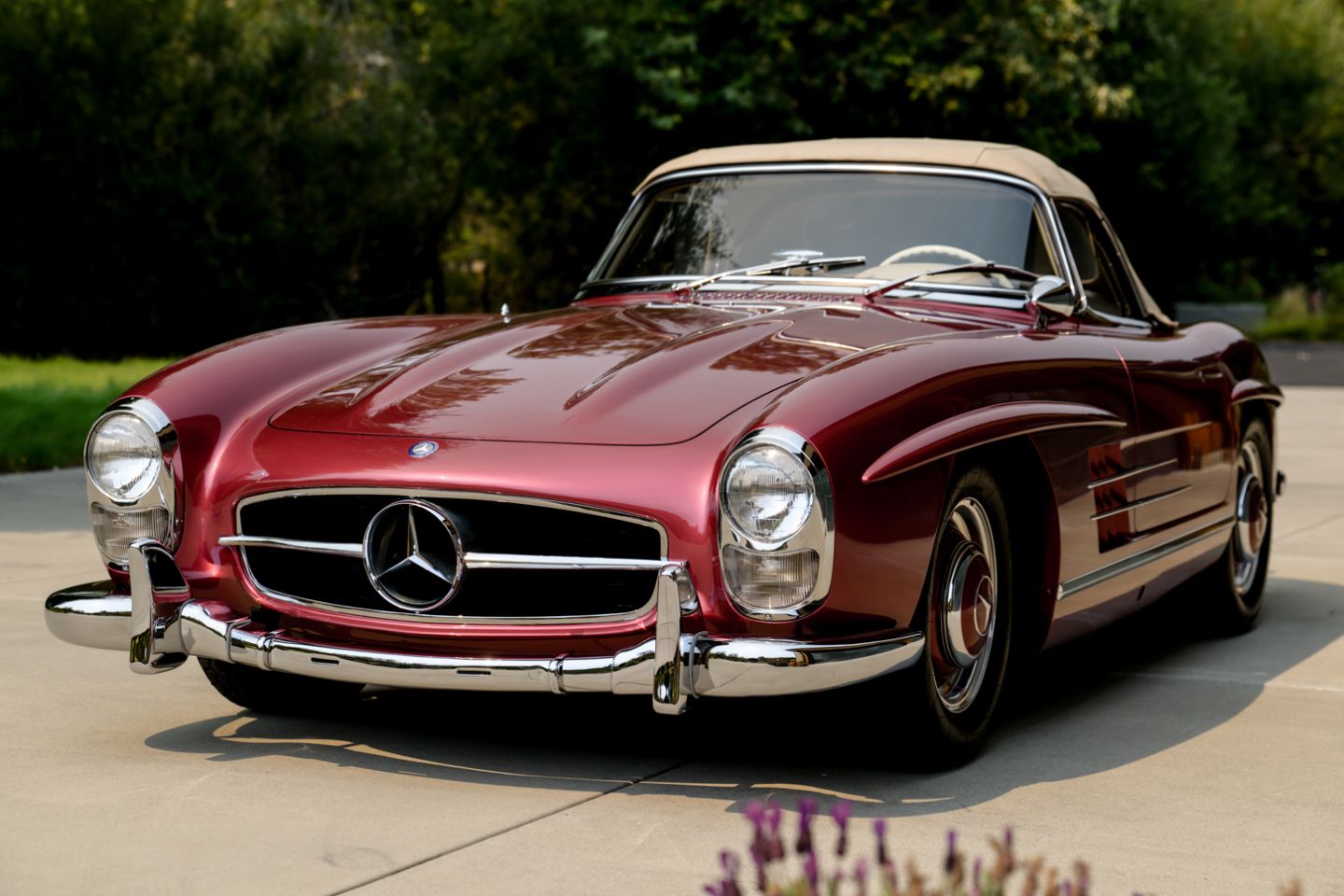With 37 years running of fastidious, enthusiast care by a multi-year Gullwing Group President, this Concours restored, still-ready-for-show 1959 Mercedes-Benz 300SL Roadster presents today in the striking Mercedes-Benz factory color of Garnet metallic paint over a beautifully kept 1060 creme leather interior with matching canvas soft top, chrome wheels, fitted matching luggage and factory hard top. The 300SL comes with a copy of its factory data card, original books, tools and jack. Chassis 8500158 is an example well-suited for show on any concours lawn in the world, with fully known history from new and a level of curb appeal and over visual prowess that few 300SLs in the world can match, this W198 Mercedes-Benz is ready for new adventures and a next chapter of driving enjoyment.