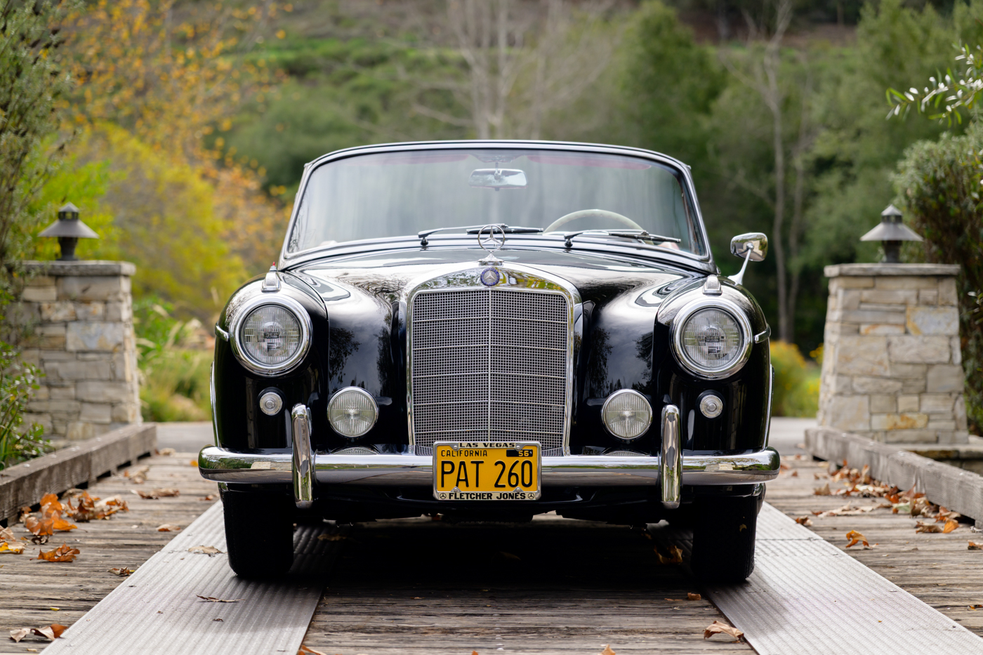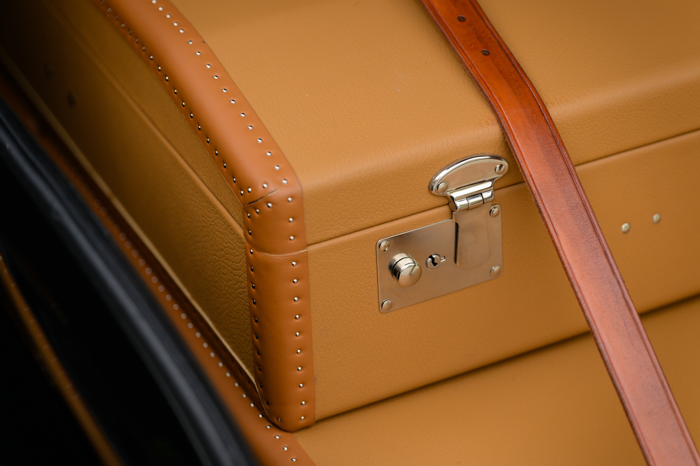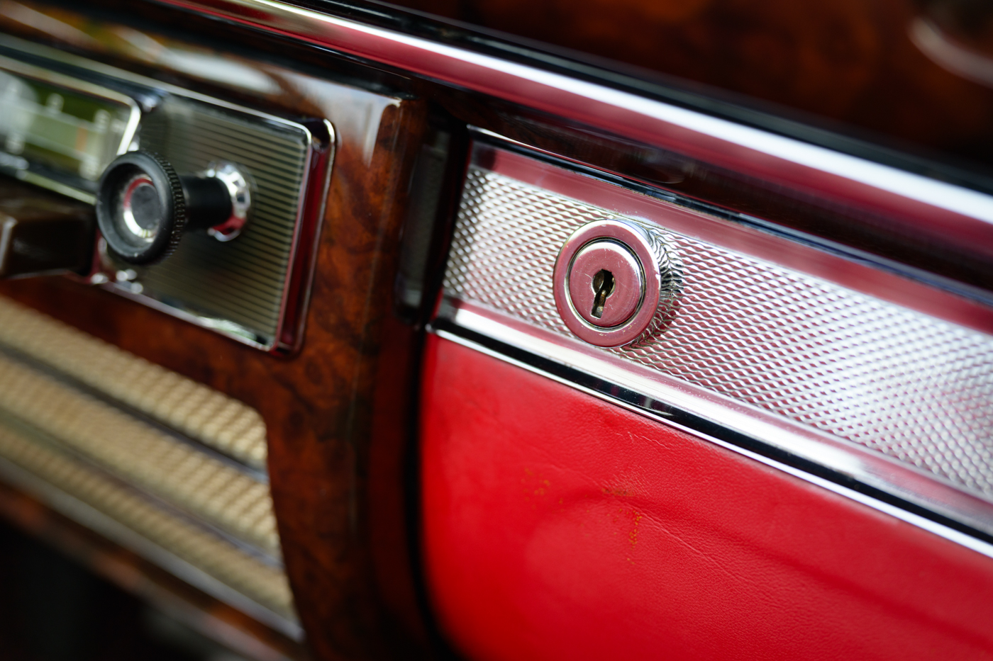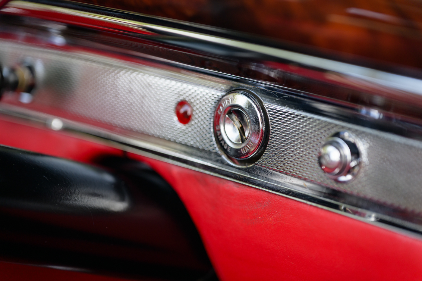 While in Dr. Lutfy’s ownership, this 220SE Cabriolet has undergone consistent maintenance and has been the beneficiary of climate controlled dry collection storage through to today. Of note, the original leather of the front seats speak to the believed to be original 12,328 miles on the odometer with minimal wear throughout, still remaining in supple condition for regular use. The front seats, door panel leather and arm rests in the rear seating area all remain original and are still in excellent condition adding a particularly pleasing sense of history to the experience of driving the car. The rear seating compartment leather has been restored while the armrests and side panel leather remains in beautiful original condition. The wood dash has been expertly redone under the Dr. Lutfy ownership by Madera Concepts of Santa Barbara, Ca and a new leather boot cover has been made to cover the convertible soft top while the top is down. The original boot cover comes with the car and is perfect for use at events as a display of the car’s unusual preservation qualities. In furtherance to the luxury afforded by this 220SE convertible, it also comes appropriately fitted with a three-piece set of tan fitted luggage for the trunk space.