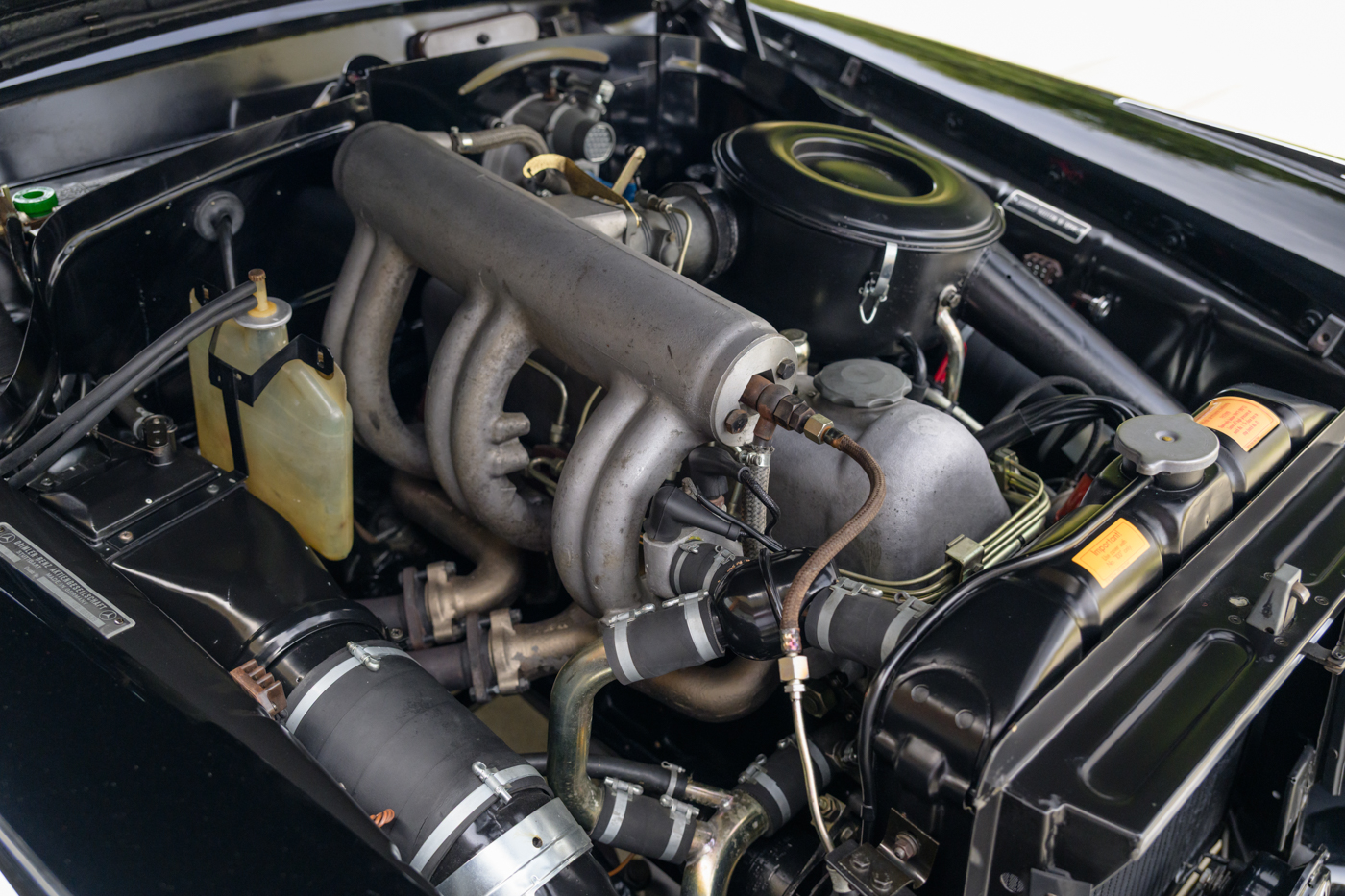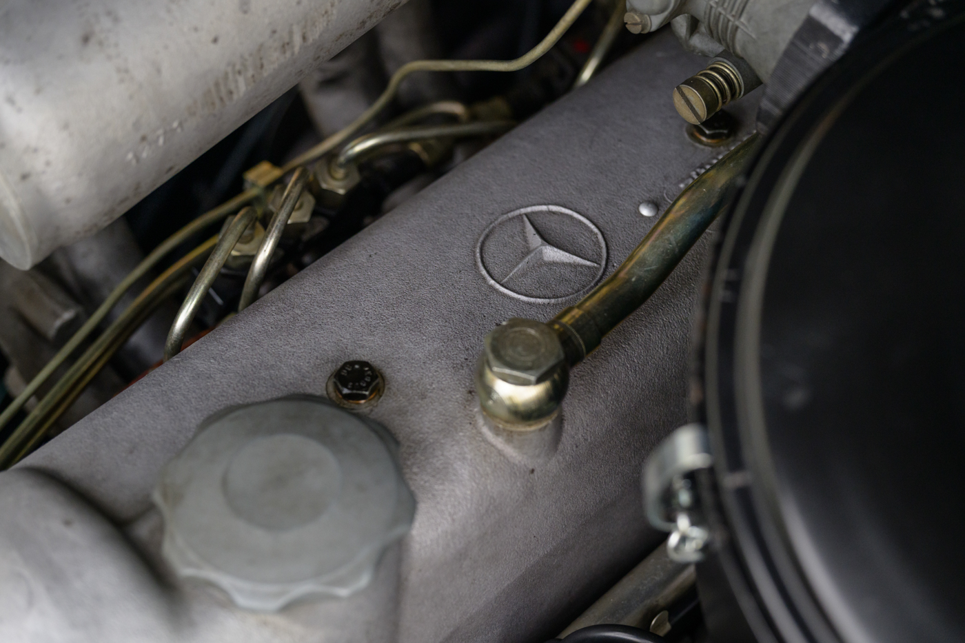 In addition to the superb condition of the exterior and interior, the engine bay and underside are equally impressive. The engine bay has seen light restoration work of the painted surfaces over impressively well kept originality. Further to the car’s low mileage, the engine itself shows signs of having never been taken apart with correct original hardware throughout. The underside of this 12,000 mile 220SE Cabriolet is as original and well kept as you’re likely to find on any example in the world. All original hardware is present as is original paint on nearly all the surfaces with original yellow and red witness marks applied by factory inspectors present at every turn. Original factory paint drip marks are clearly visible on the flat surfaces while the car retains its original muffler components as well as original Bilstein shock absorbers.